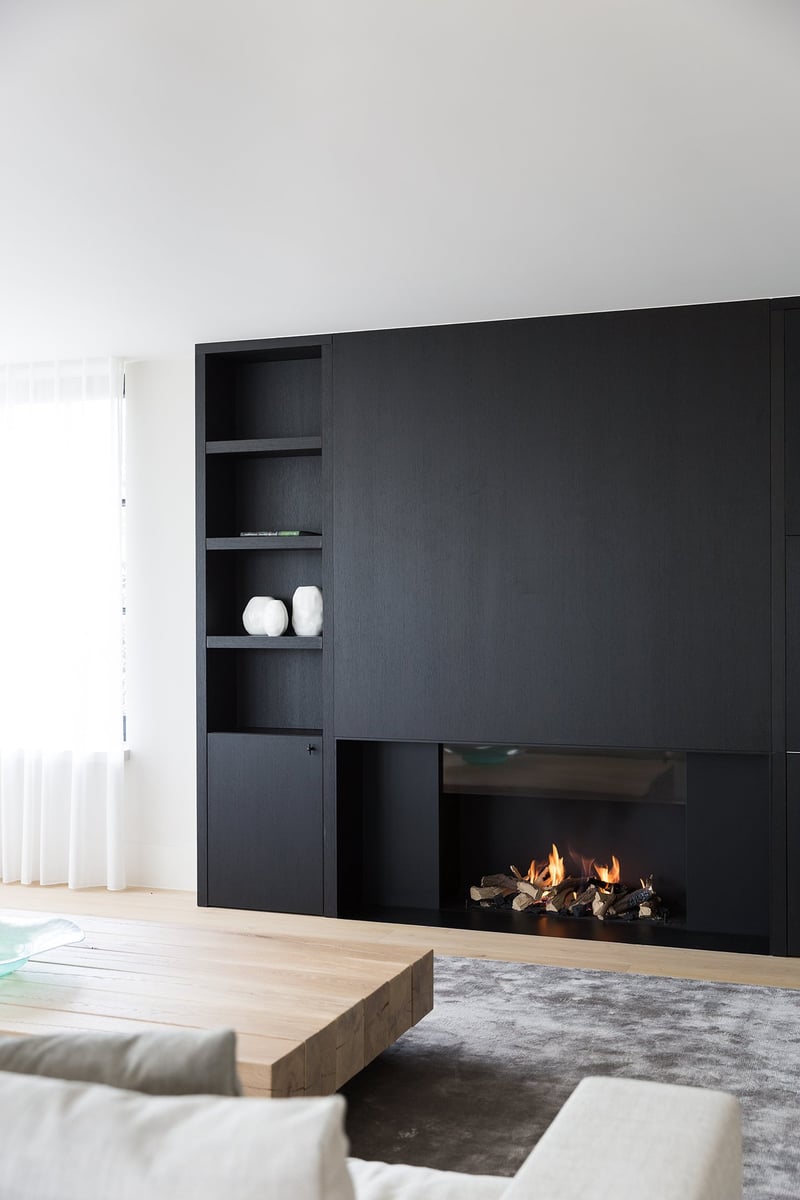 Hier een leuke twist door de dubbel dienstdoende pivot-deur die ofwel de berging afsluit of andersom de koffiehoek laat verdwijnen.